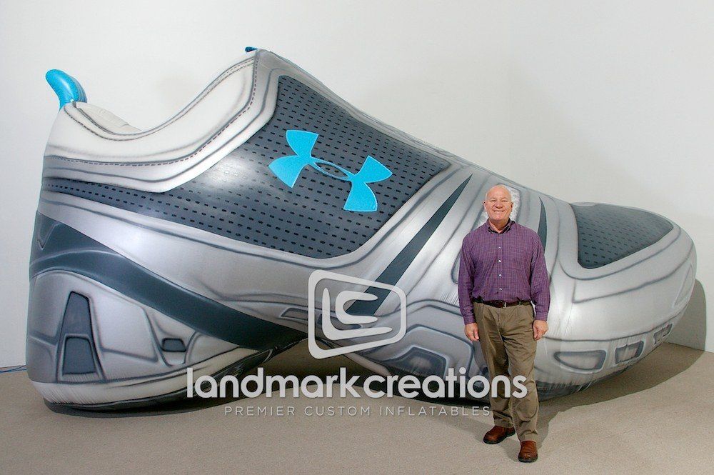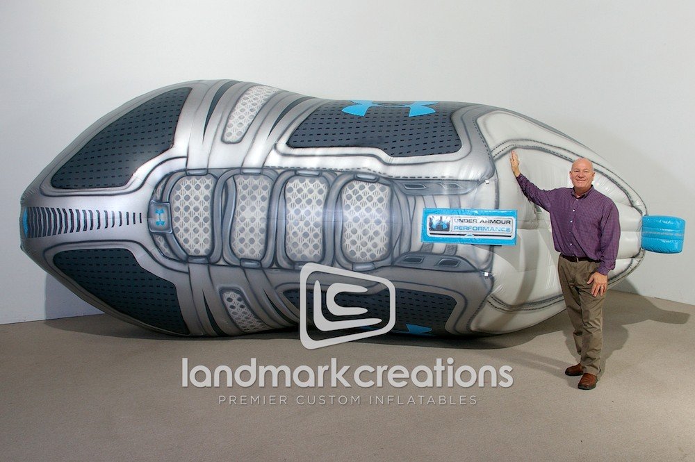 Under Armour, a sporting goods retailer, turned their popular ladies' cleat into a giant inflatable to advertise at sporting events.