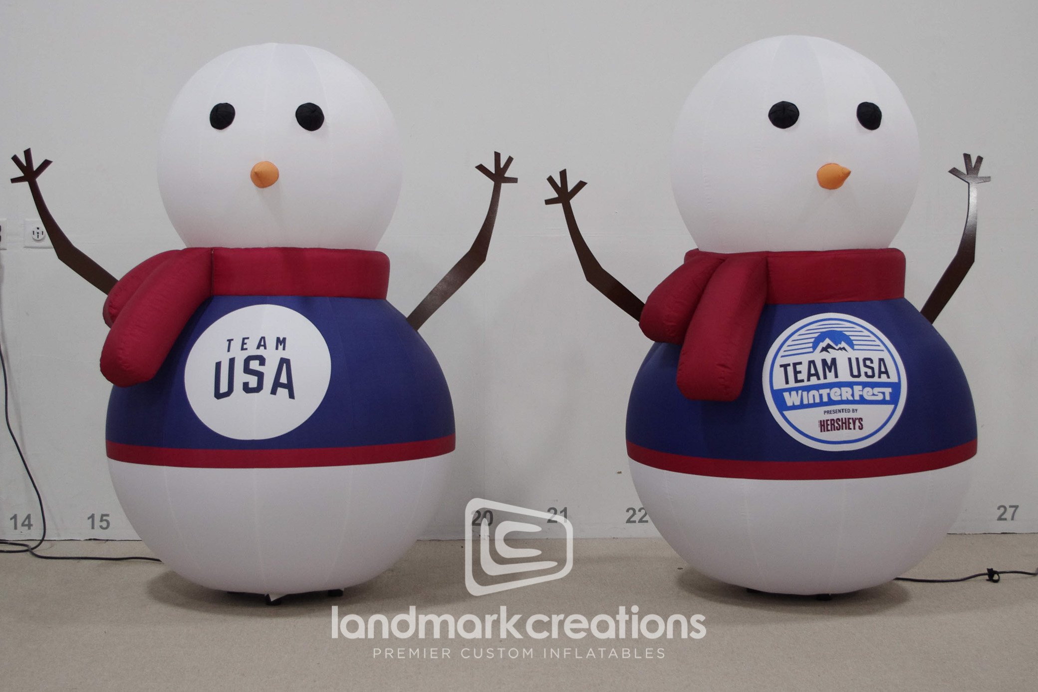 The United States Olympic Committee added a touch of whimsey and excitement at the Winterfest Olympic tryouts with these custom inflatable snowmen. Fans snapped pictures posing next to the inflatables, spreading the seasonal spirit Winter Olympics excitement on social media channels.