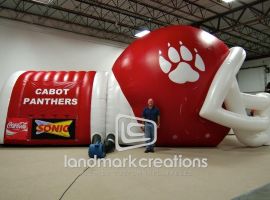 Van Alstyne High School inflates their custom football helmet during home games to pump up fans and athletes. The inflatable tunnel was custom designed to replicate their existing helmet!