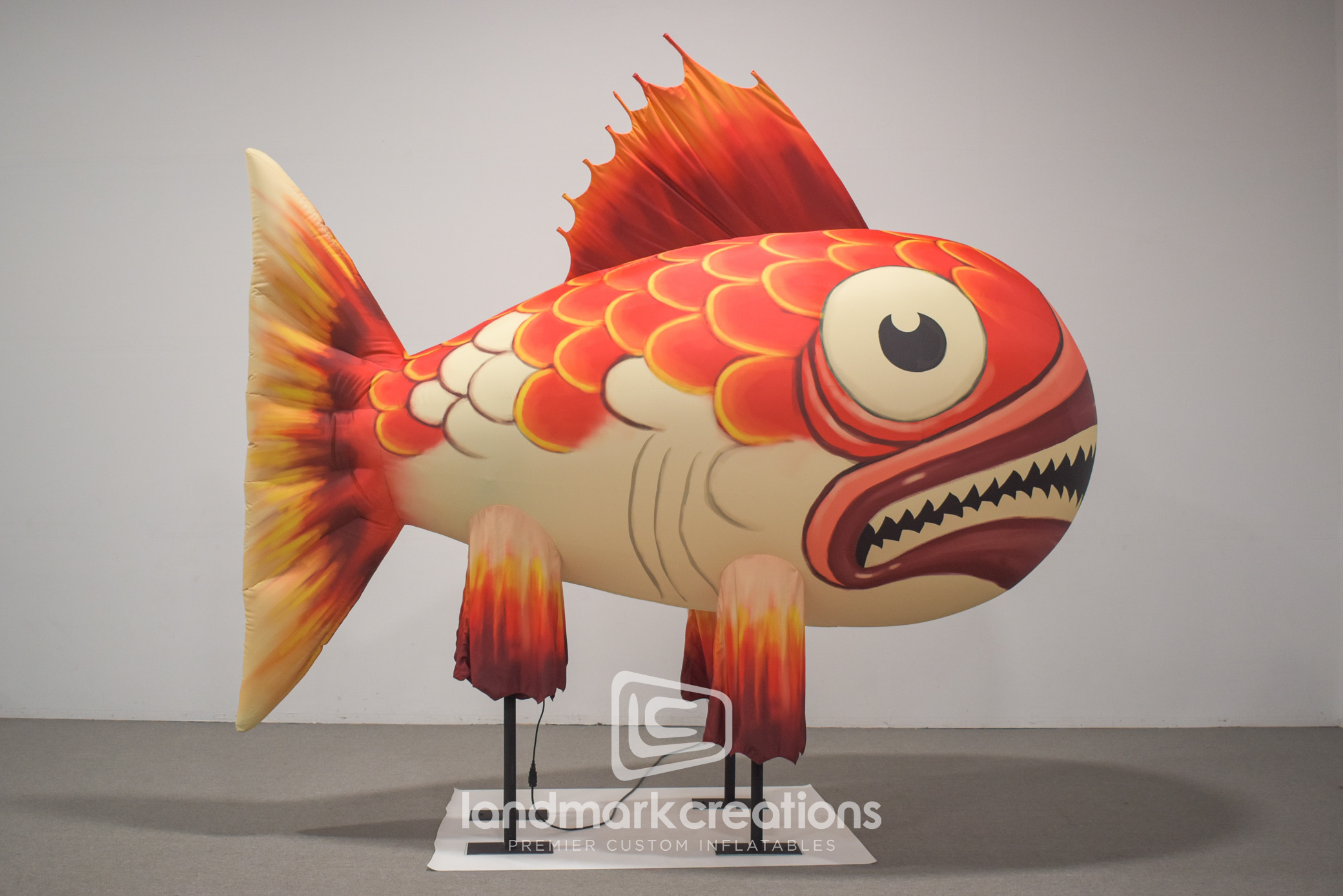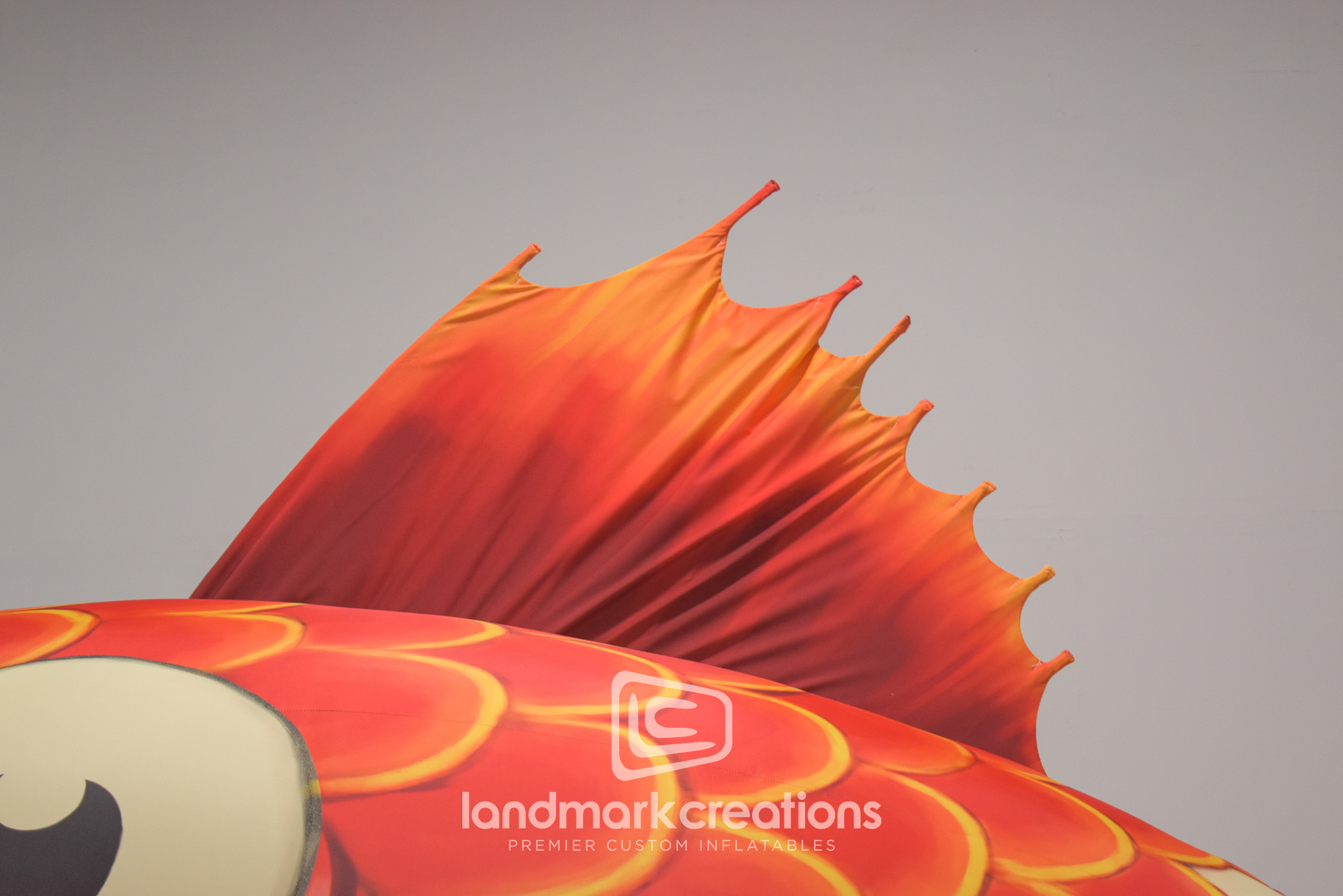 Landmark Creations partnered with The Display Company to design a custom inflatable inspired by vintage parade floats. This inflatable fish, featuring fabric fins, was crafted for a movie shoot in Baltimore, MD, showcasing our expertise in creating bespoke art exhibits and set pieces for the entertainment industry.