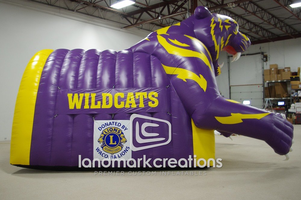 Want to wow football fans in the stands? Inflate a custom-designed football tunnel! The Waconia Wildcats launch onto the field through this purple and gold mascot tunnel.