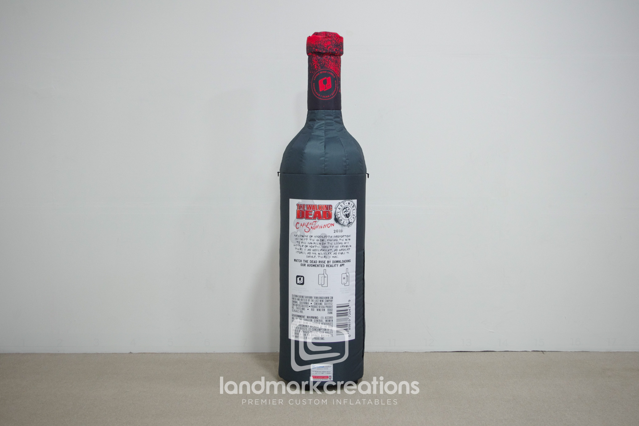 Commissioned by FUSE for Lot18's Walking Dead Wine collection, this custom inflatable replica of a zombie-themed wine bottle captivated attendees at the 2018 Walker Stalker Convention in Lombard, IL. Integrated augmented reality features allowed users to scan the bottle, triggering dynamic animations that enhanced engagement and created a memorable brand experience.