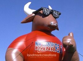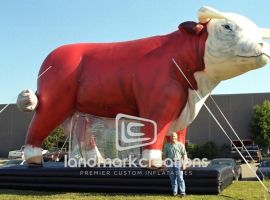 Waxahachie Autoplex in Texas inflates their giant inflatable bull to attract customers during automotive promotions.