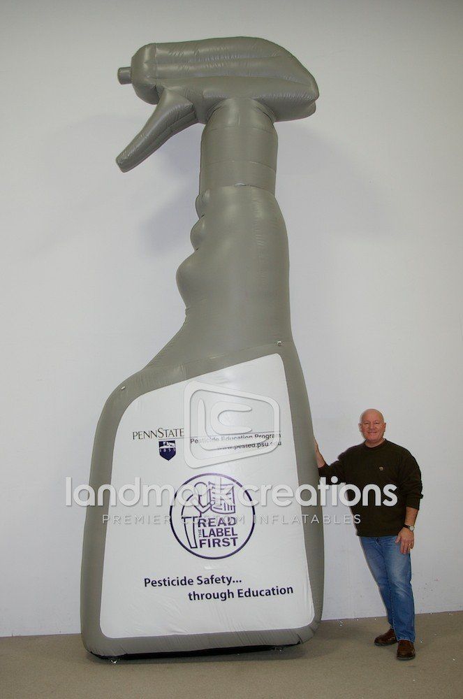 Inflatable gardening product replicas, like this giant WeedOut spray bottle, are a creative way to get instant brand recognition and promote new product lines at trade shows, product launches and marketing events.