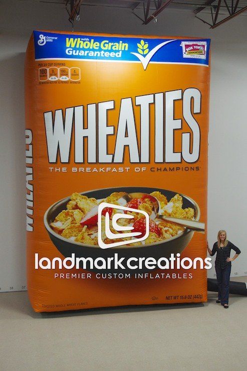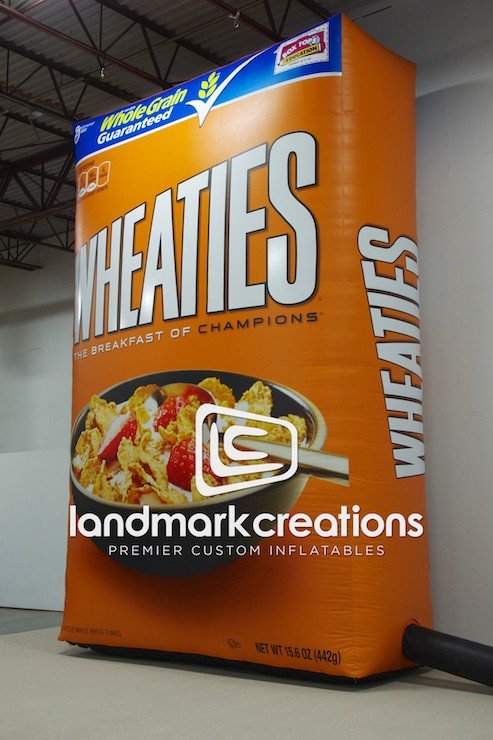 This inflatable Wheaties cereal box features the images of a classic bowl of Wheaties with sliced strawberries. Printed with high-resolution graphics at 20-feet tall, it's bound to make viewers far and wide hungry for breakfast!