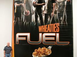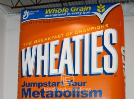 This giant inflatable Wheaties cereal box for General Mills features the 2010 NFL Champions, the Green Bay Packers and quarter back Aaron Rodgers.