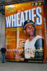 This giant inflatable Wheaties cereal box features major league baseball player, Roberto Clemente of the Pittsburgh Pirates. He was the first Hispanic induced into the Baseball Hall of Fame.