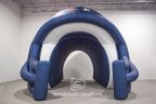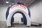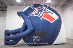 Landmark Creations designed and manufactured this striking custom inflatable football helmet tunnel for Wimberley High School. The helmet stands at an impressive 16.5 x 16.5 x 21.5 feet and features a blue tunnel interior with white exterior, showcasing the school's colors and logo. This inflatable tunnel adds excitement and team spirit at sporting events, creating a memorable entrance for players and fans alike. Our custom inflatables are tailored to fit the unique branding of each client, offering a bold and functional centerpiece for sports marketing and promotions.