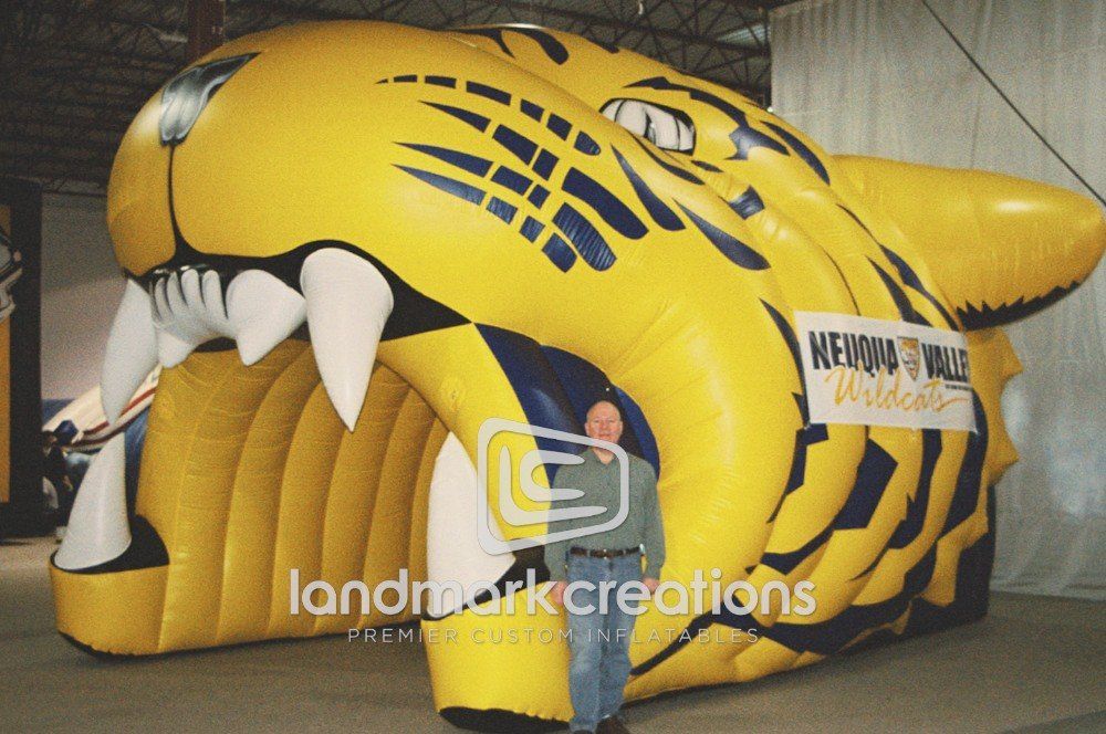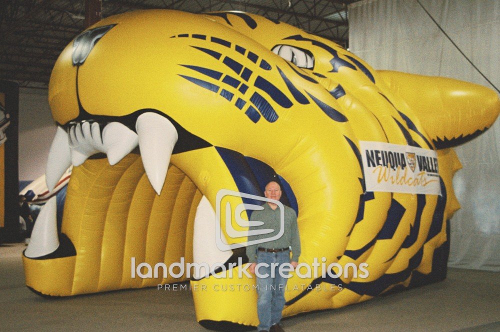 The Neuqua Valley Wildcats explode onto the field through this custom inflatable mascot tunnel. Completed with school colors and banners, the athletic tunnel pumps up fans as players run onto the field.