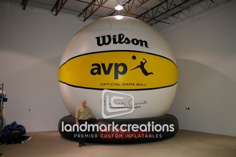 The Wilson Official Association of Volleyball Professionals game volleyball was turned into this giant inflatable replica with base to use at tournaments and competitions.