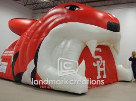 Wilson High School gets fans excited by inflating their custom tiger sports tunnel during athletic events. With bright eyes and the school emblem printed on the side banners, this inflatable tunnel is fierce!