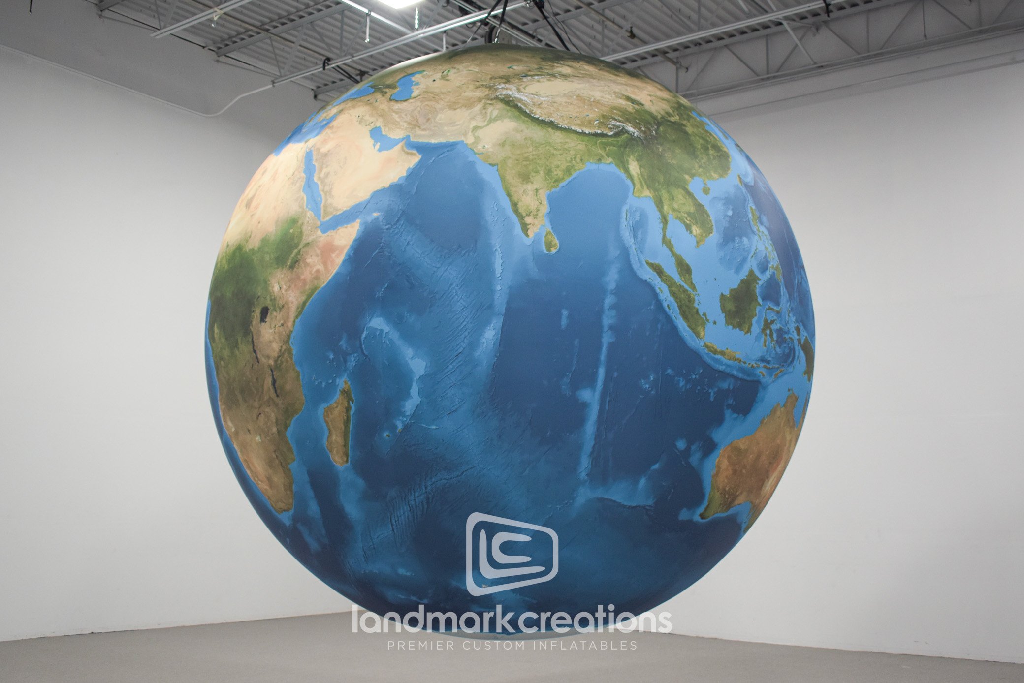 The team at Derse worked with Landmark to create a giant inflatable Earth display for Louisiana Pacific to use at the International Builders' Show. The custom inflatable planet was hung as the centerpiece in the organization's booth and created a stunning visual for visitors as it rotated overhead.