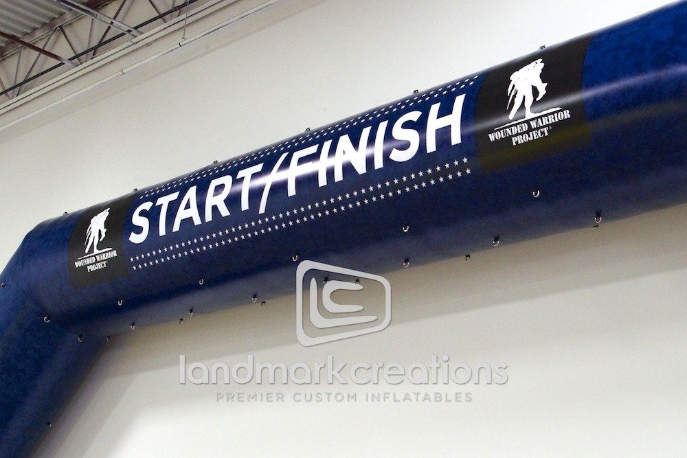 Custom start and finish archways add professionalism to racing events. The Wounded Warrior Project added this inflatable racing arch, complete with camouflage details and custom banners, to energize participants and race spectators!