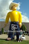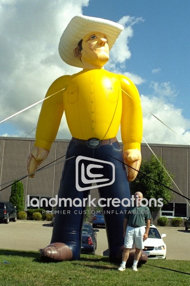 W.W. Outfitters uses their giant inflatable cowboy to attract the attention of hunters. They simply inflate and their wrangler cowboy to promote their experienced hunting guides.