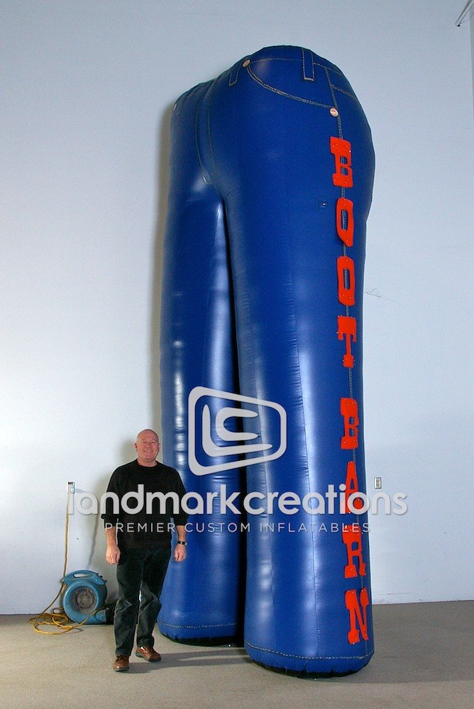 Wrangler Jeans retailer, Boot Barn, inflates these jean replicas to attract traffic and increase sales during retail promotions.