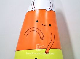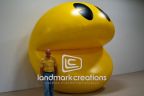 Custom inflatables, like this dot man, build interest with vibrant colors and size. Giant balloons make audiences curious about what is going on.
