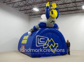 Meridian High School wanted to display their mascot and this inflatable sports tunnel does just that! The yellow jacket football tunnel takes center stage on the field and pumps up fans every time.