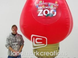 The Brookfield Zoo used custom inflatable light bulb costumes to promote holiday events at the zoo. The inflatable light bulbs were seen at the Magnificent Mile Lights Festival parade in Chicago.