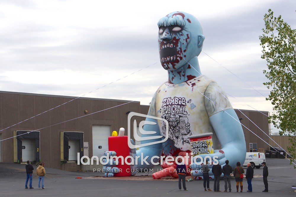 This 50-foot-tall inflatable zombie, named Phil, rocked the Zombie Pub Crawl on October 13 in Minneapolis / St. Paul. Phil was used to attract more than 8,000 zombies to Midway Stadium to break the world record for Largest Gathering of Zombies - Way to go Phil!