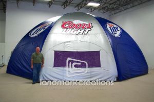 - Inflatable Tents - Welcome visitors into your covered dome where you can set up tables and chairs, give away samples, register people for a drawing and much more. This form of inflatable advertising will serve you best when imprinted with your logo or brand name, or when used with interchangeable banners.