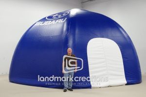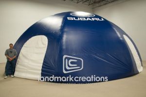 - Inflatable Tents - Welcome visitors into your covered dome where you can set up tables and chairs, give away samples, register people for a drawing and much more. This form of inflatable advertising will serve you best when imprinted with your logo or brand name, or when used with interchangeable banners.