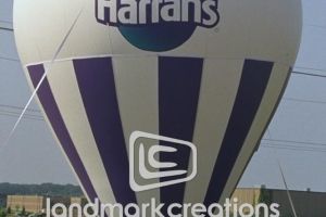 Custom outdoor inflatables from Landmark Creations come complete with everything you need, including blower, tethers and hooks. Flame-retardant materials; durable 7 oz to 18 oz vinyl nylon; UV inhibitors for long-term sun exposure; double-needle, lock-stitched seams for resilience; and artwork ranging from hand-painted to high-resolution graphics are just a few of the many other features we put into all our truly creative outdoor advertising balloons.
