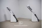 These custom-designed, 9-foot inflatable bats were created for Naughty By Nature’s concert stage, offering a dramatic visual impact. The wedge-shaped bases discreetly house the blower and sandbags, allowing the inflatables to stand independently without additional support—ideal for indoor venues. This feature ensures easy setup and stability, making these inflatables perfect for concerts and events where space and time efficiency are key.